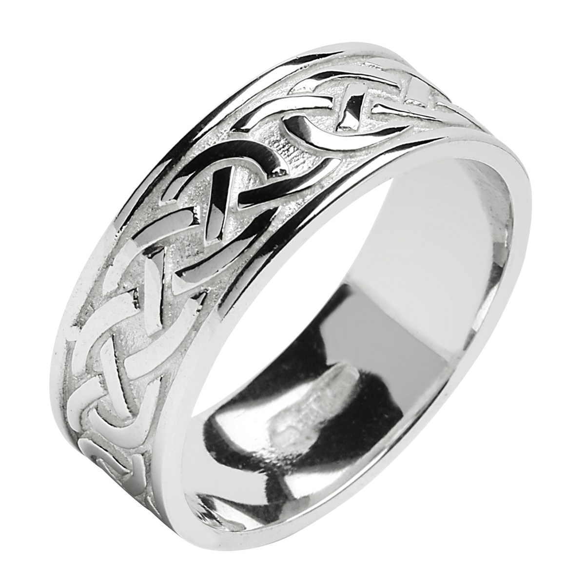 This Celtic knot white gold wedding band is also available in silver, 10k, 14k and 18k yellow gold and to mark your marriage commitment and make it even more special, why not choose matching bands to celebrate and continue the time-honored tradition of ancient artwork and craftsmanship.