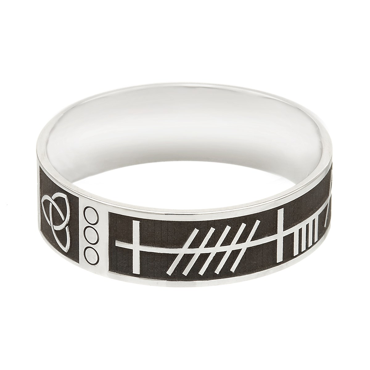 Ogham My Soul Mate Oxidized Silver Wide Wedding Ring