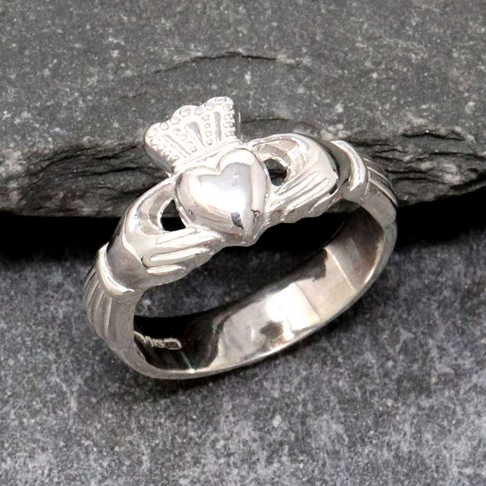 This gents Claddagh ring in sterling silver is the heaviest gents Claddagh ring in the Rings from Ireland collection and really makes a statement signifying pride in Irish and Celtic heritage and craftsmanship.