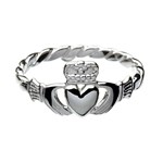 Ladies Twist Shank Silver Claddagh Ring