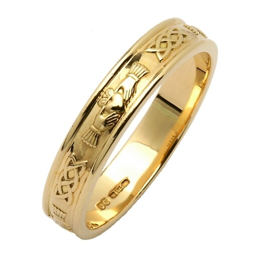 Claddagh & Celtic Knot Yellow Gold Narrow Wedding Band